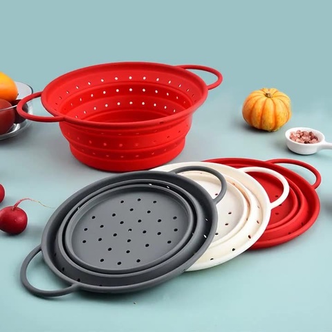 Vegetablesand Frutas Redonda Cesta De Drenagem Dobrável Cesta De Lavagem De Frutas Colander Dobrável De Silicone Coador Para Cozinha